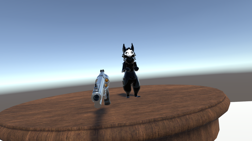 A Magnum using the VRCInstantiate methods, which brings up a highly optimized model of a magnum bullet.